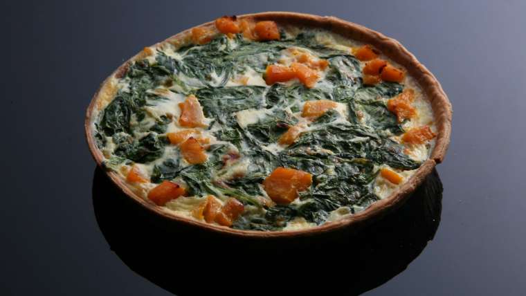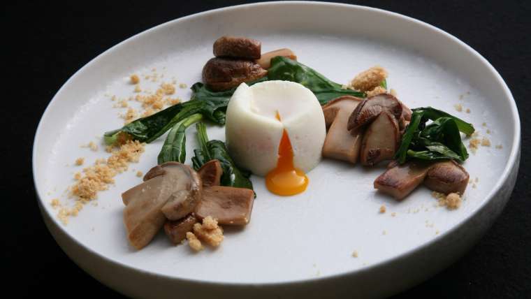 Uovo morbido con spinaci, funghi porcini e biscotto salato alle nocciole