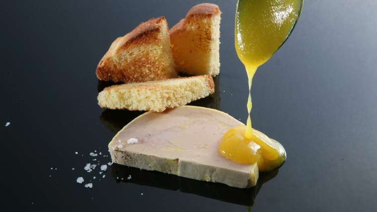 Terrina di foie gras, composta di mele e riduzione di Moscato