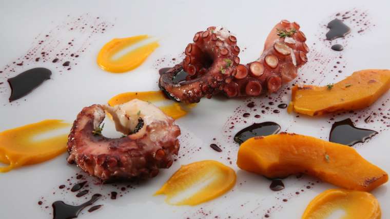 Polpo arrosto, zucca marinata, carciofi e ristretto al vino rosso