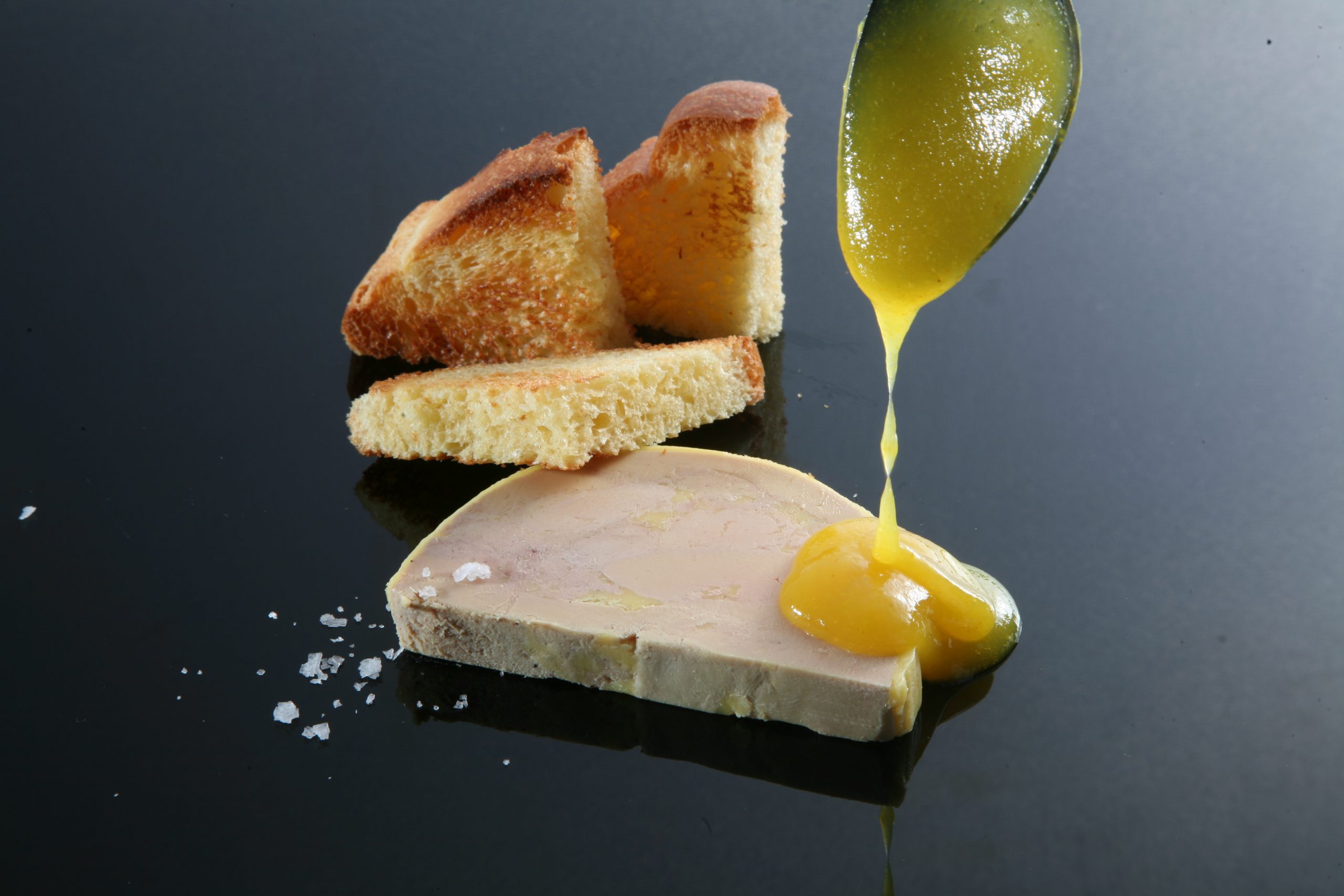 Terrina di foie gras, composta di mele e riduzione di Moscato
