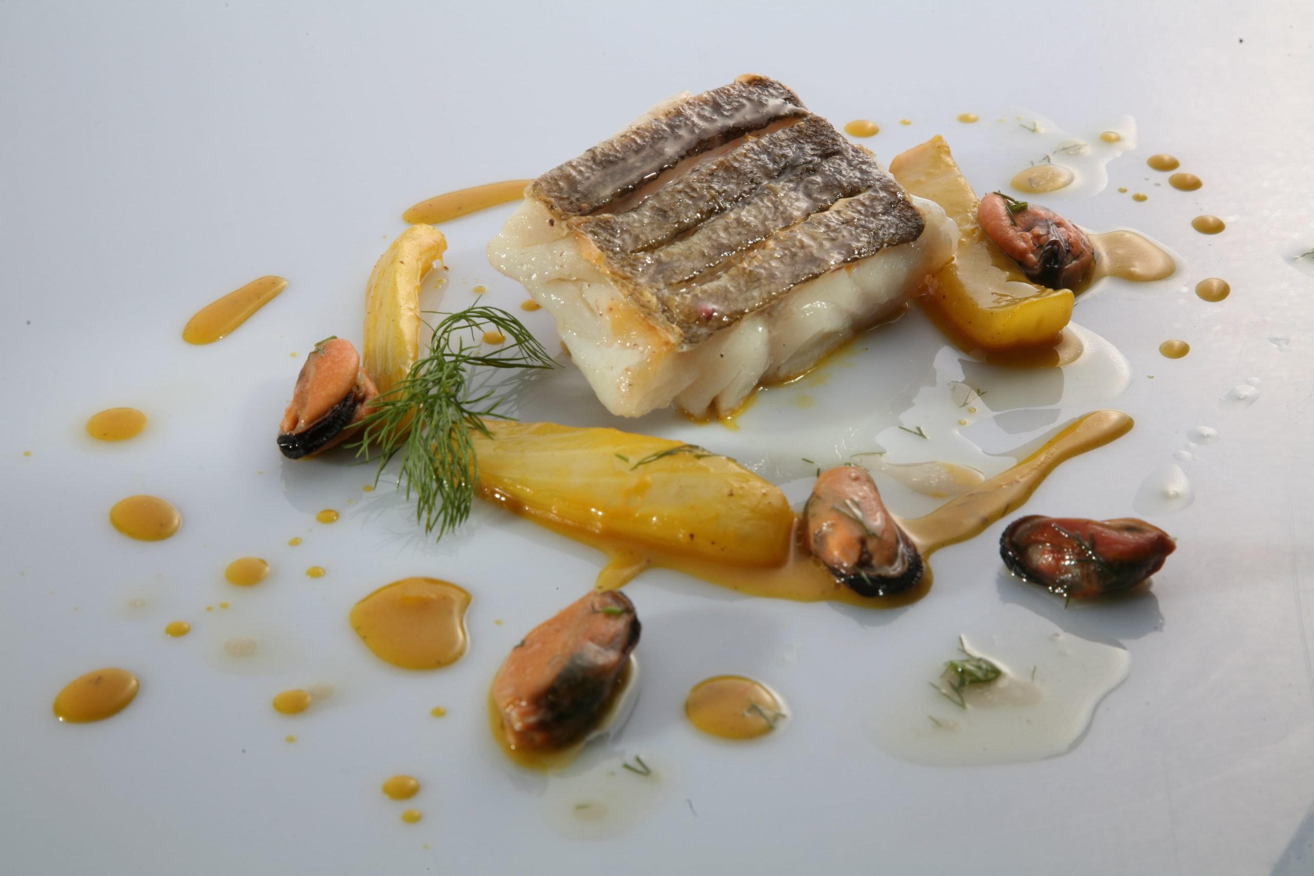 Merluzzo, ostriche, Franciacorta e croccante di polenta