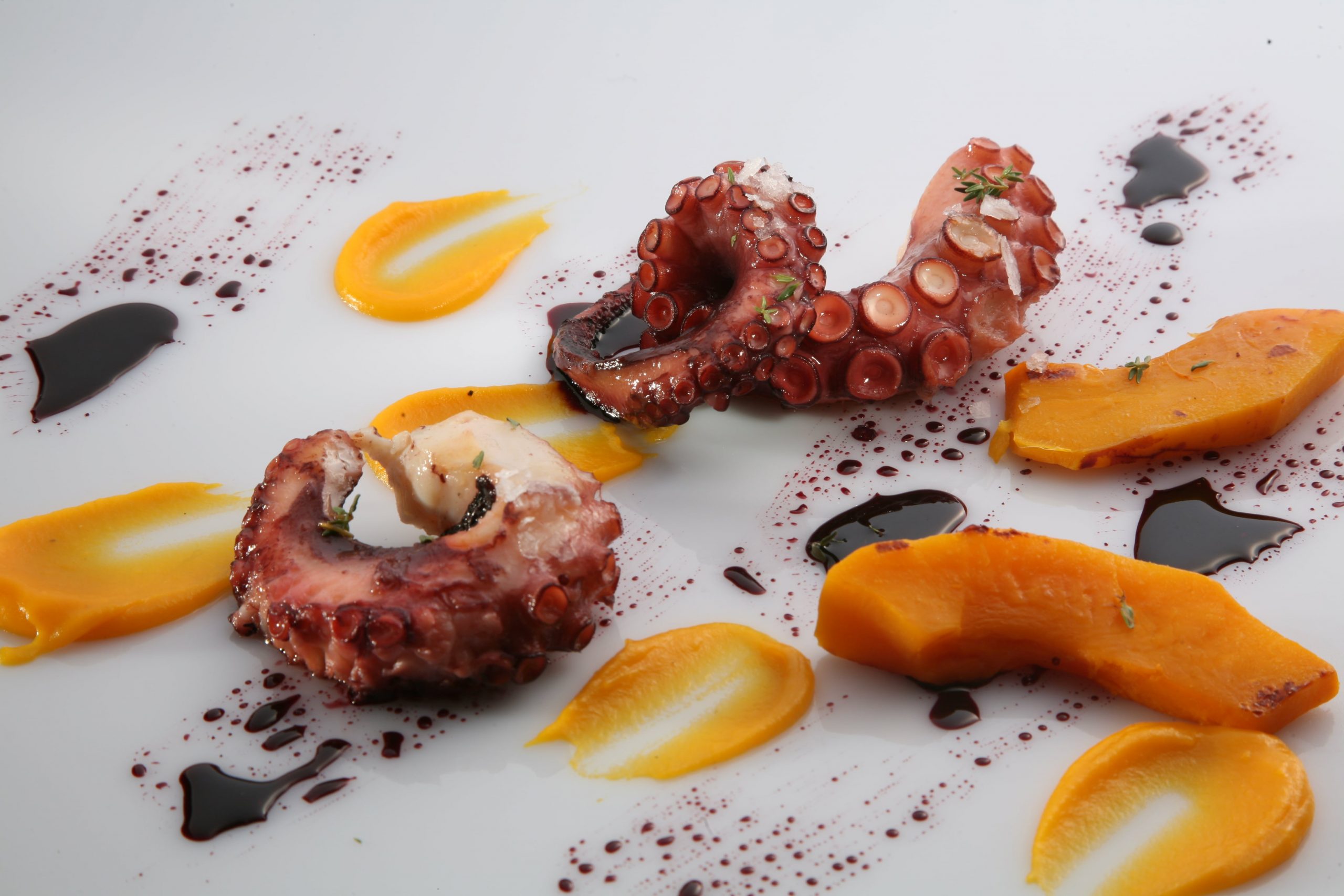 Polpo arrosto, zucca marinata, carciofi e ristretto al vino rosso