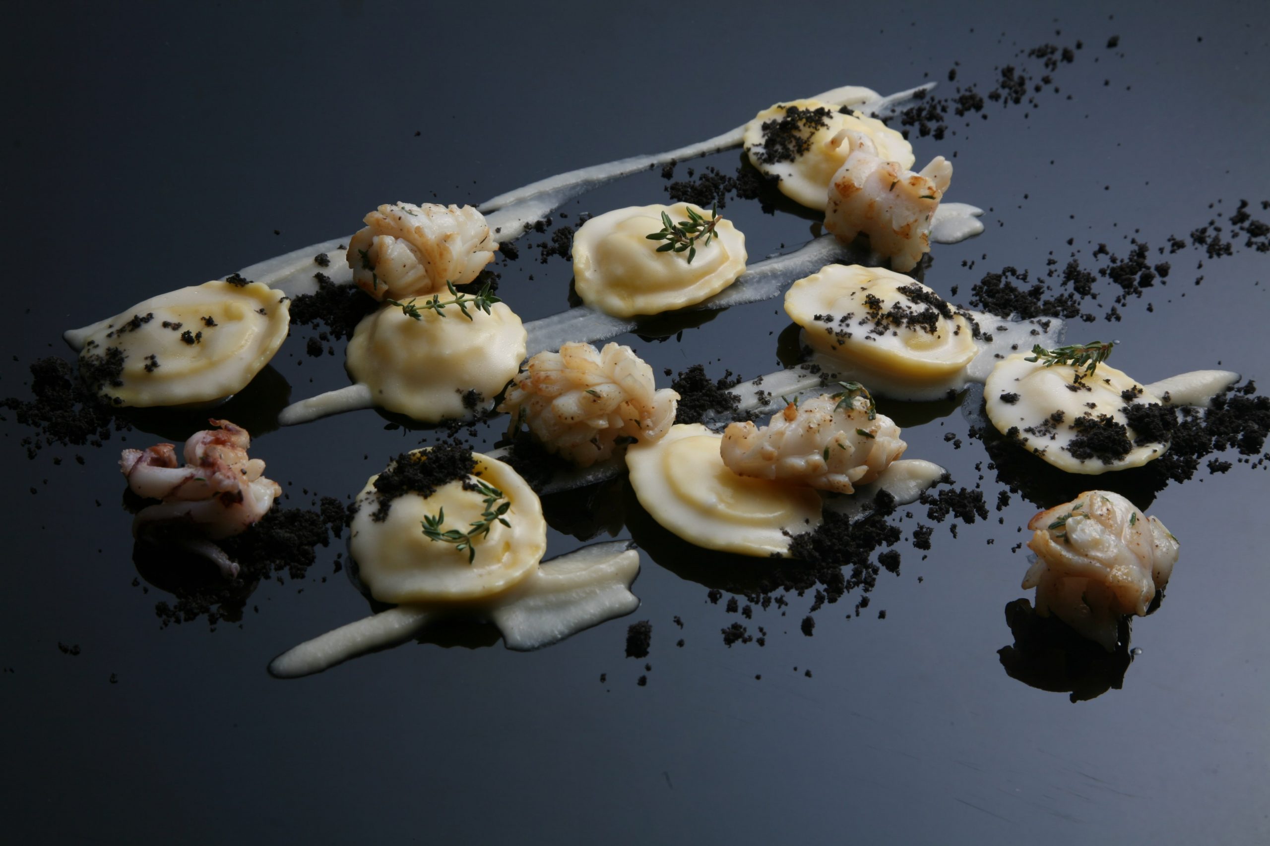 IL TORTELLO 10/02/2022 Tortelli di patate con sedano rapa, calamari e croccante al nero di seppia Share: